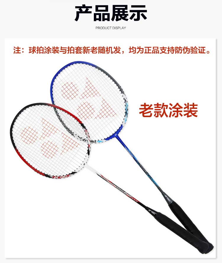 尤尼克斯YONEX羽毛球拍对拍碳素中杆2支训练比赛羽拍NR7000I-2(已穿线含手胶)