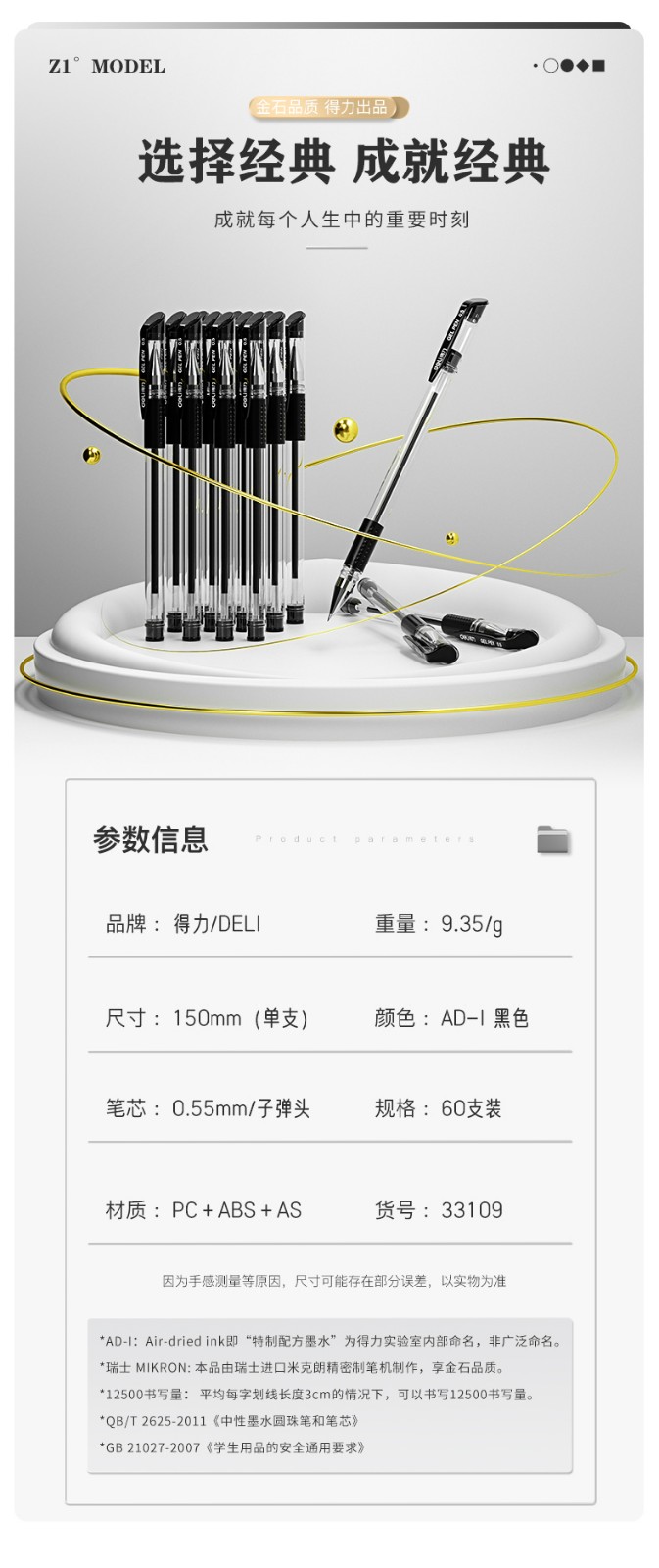 得力(deli)60支0.5mm中性笔签字笔水笔 子弹头黑色33109 办公用品