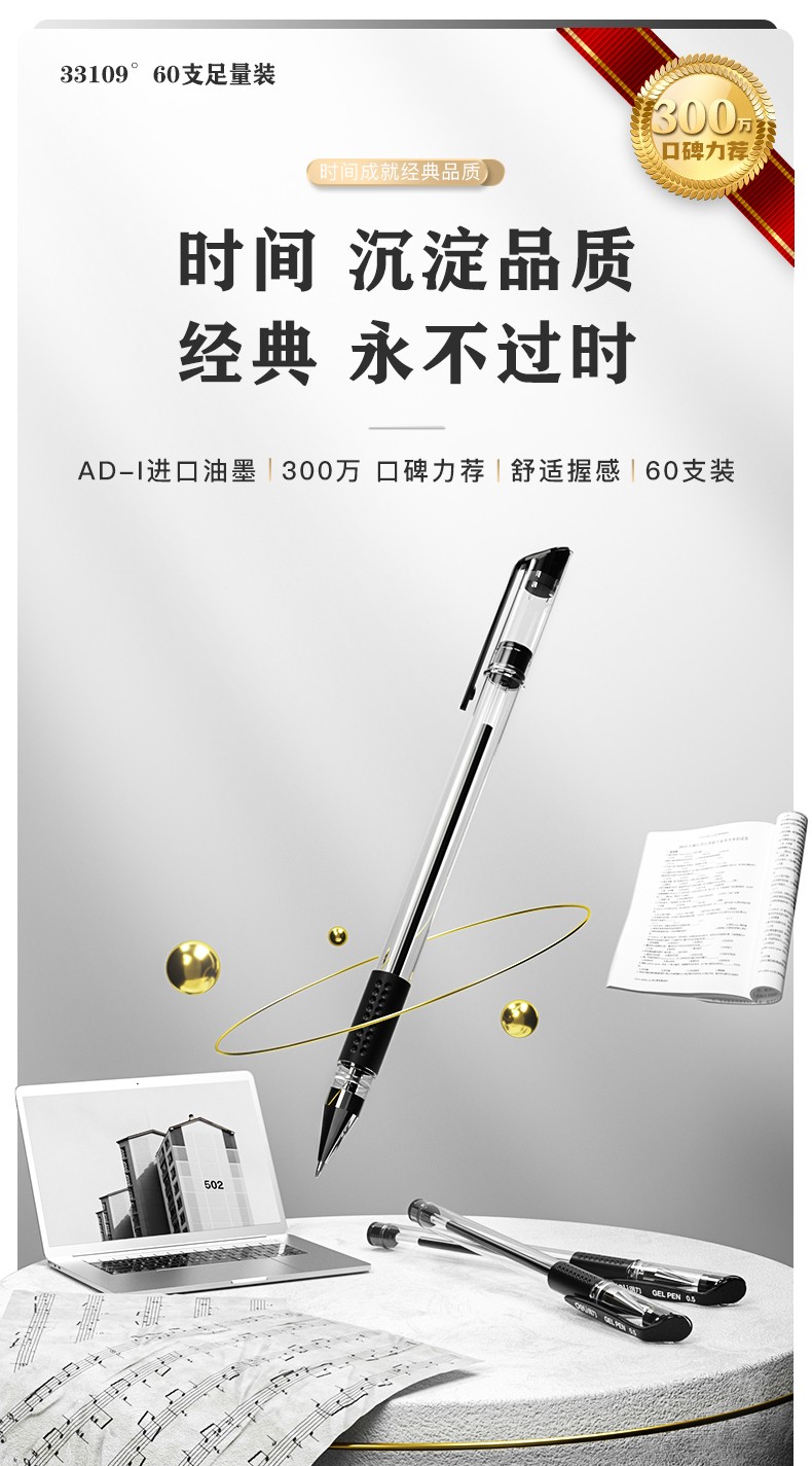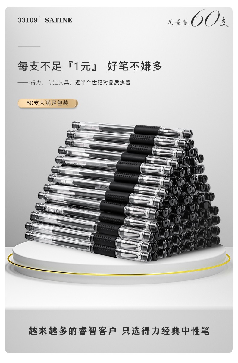 得力(deli)60支0.5mm中性笔签字笔水笔 子弹头黑色33109 办公用品